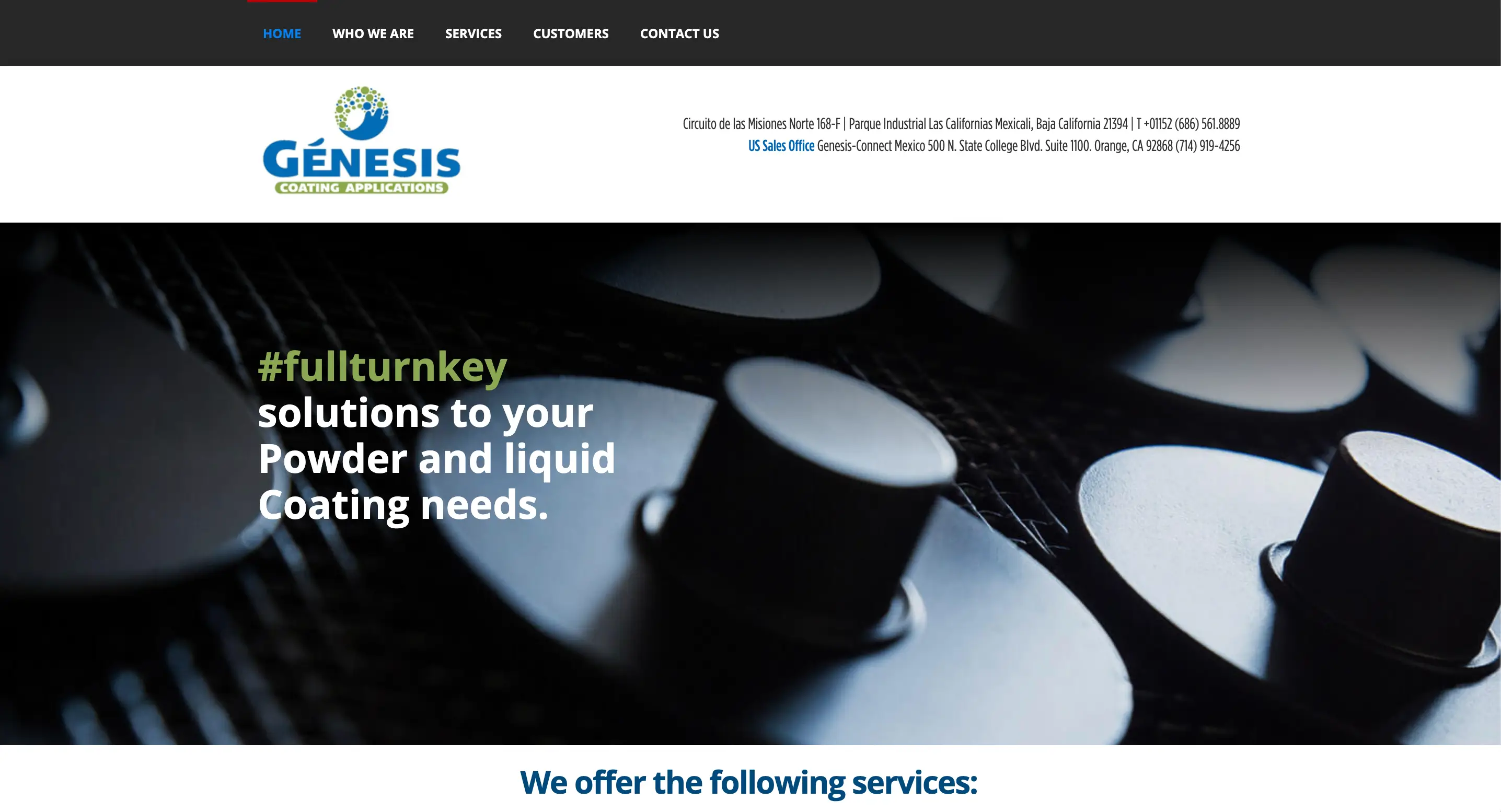 Genesis is a service company founded in 2001, offering FULL TURN KEY solutions to your Powder and liquid Coating needs as well as specialized assembly.